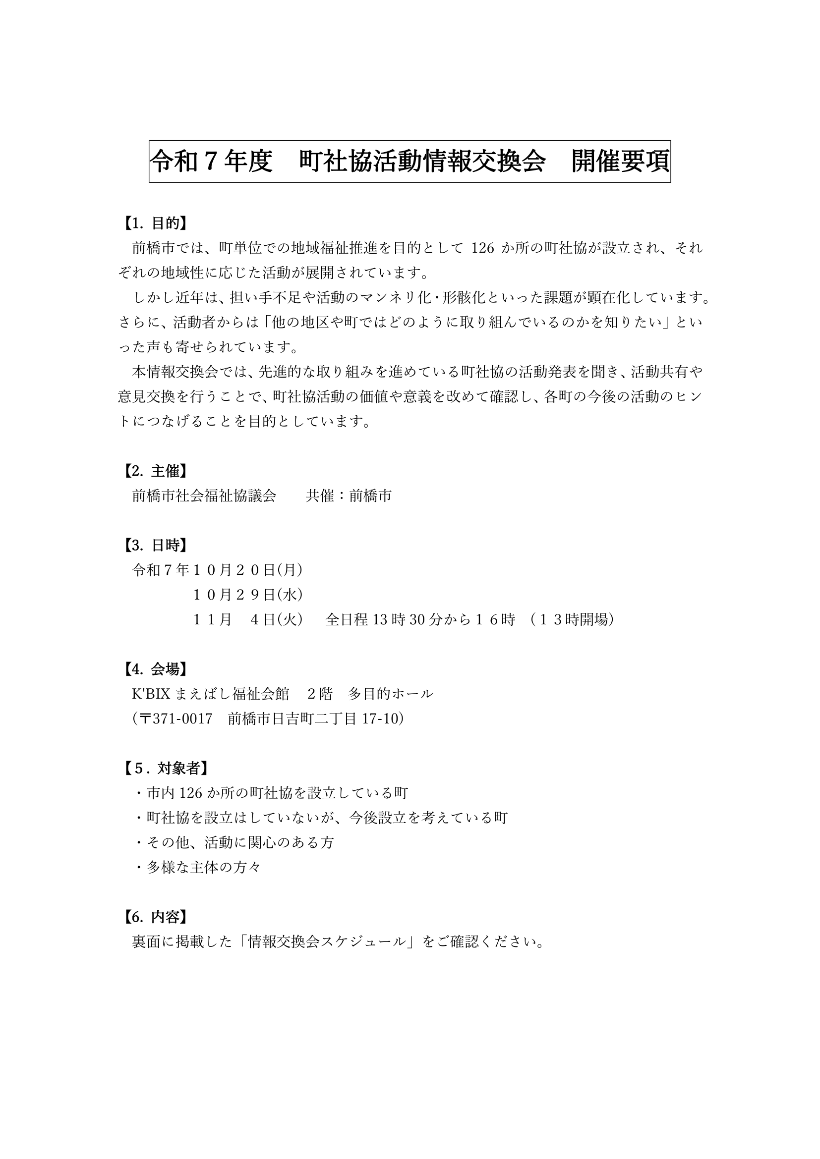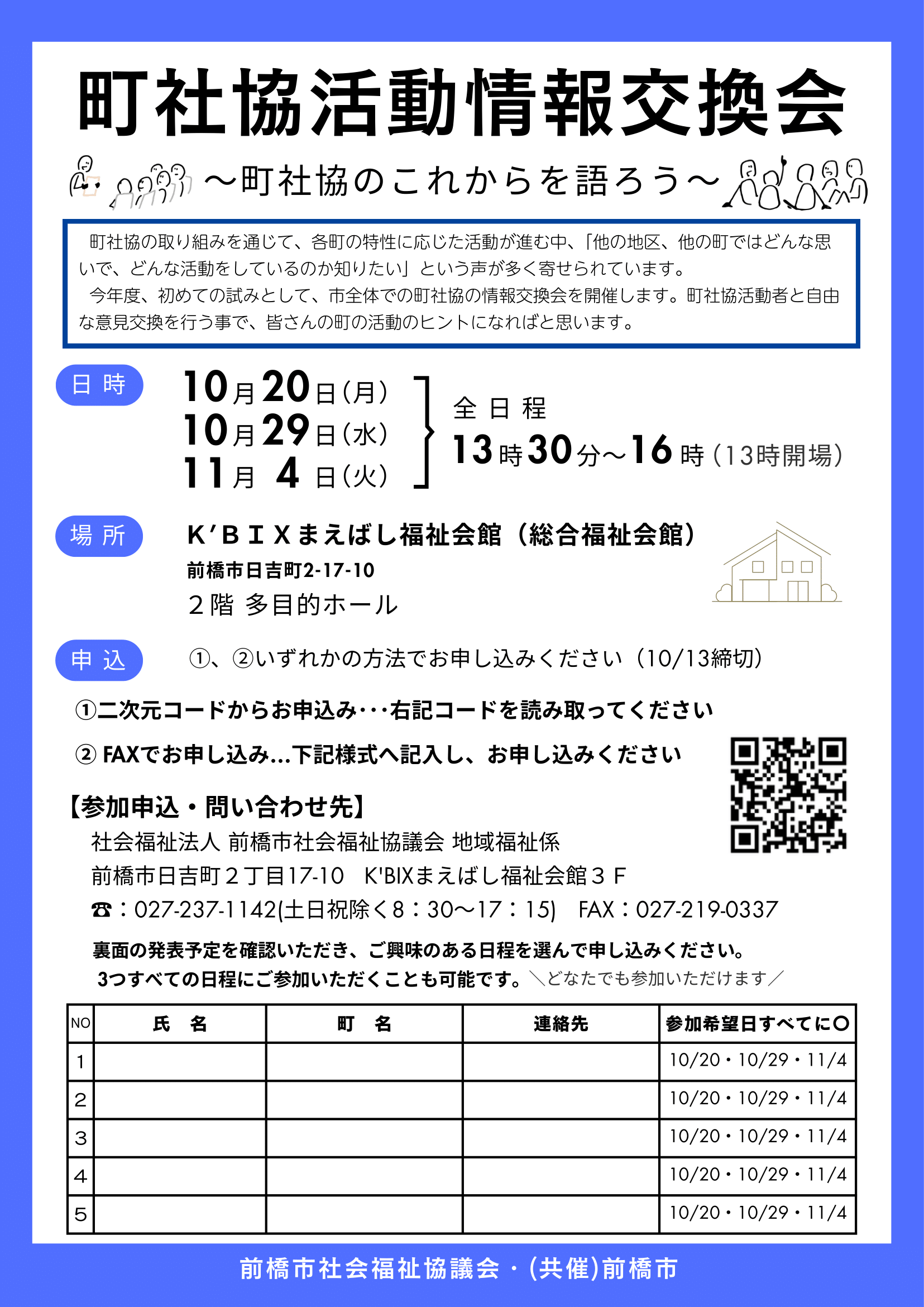 「他の地区や町では、どのような思いで、どんな活動をしているのか知りたい」という多くの声にお応えし、情報交換会を開催いたします。 この会は、町社協の活動者が自由に意見交換を行うことで、皆様の町の活動のヒントを見つけていただくことを目的としています。