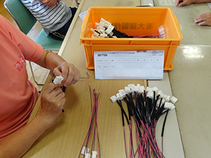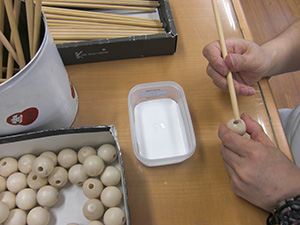 木琴のバチ組み立て作業 -